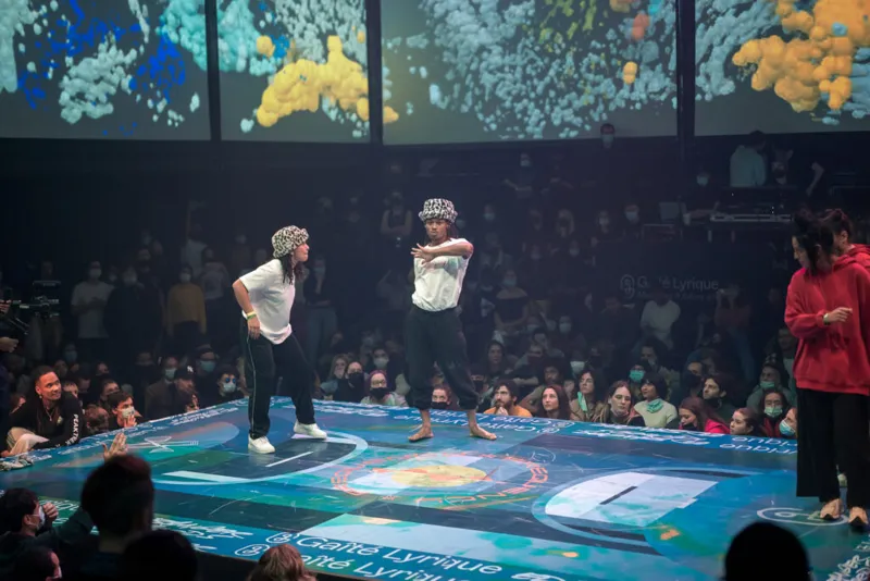 Immersive live visuals at Gaîté Lyrique for Frequency dance battle festival.