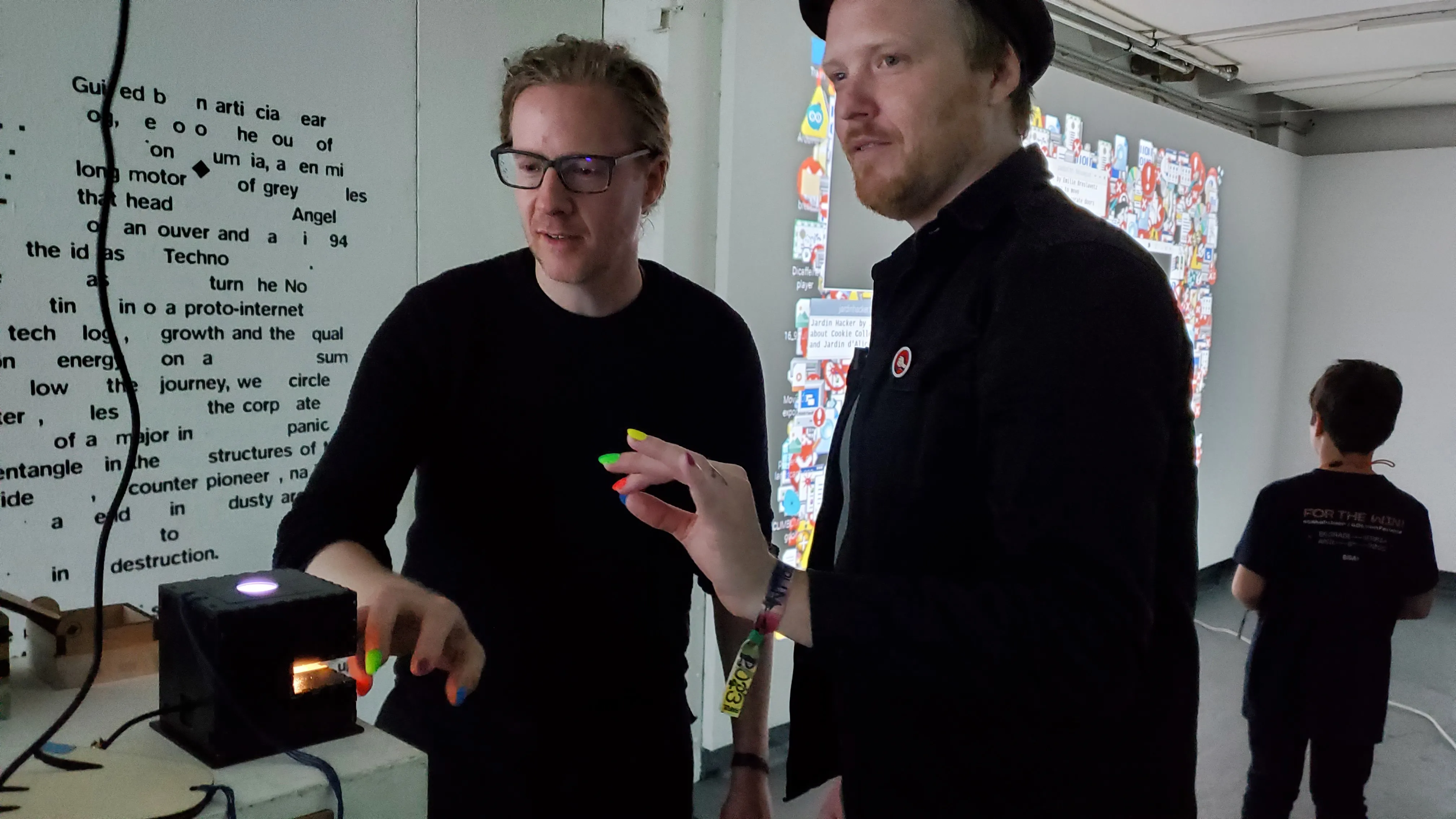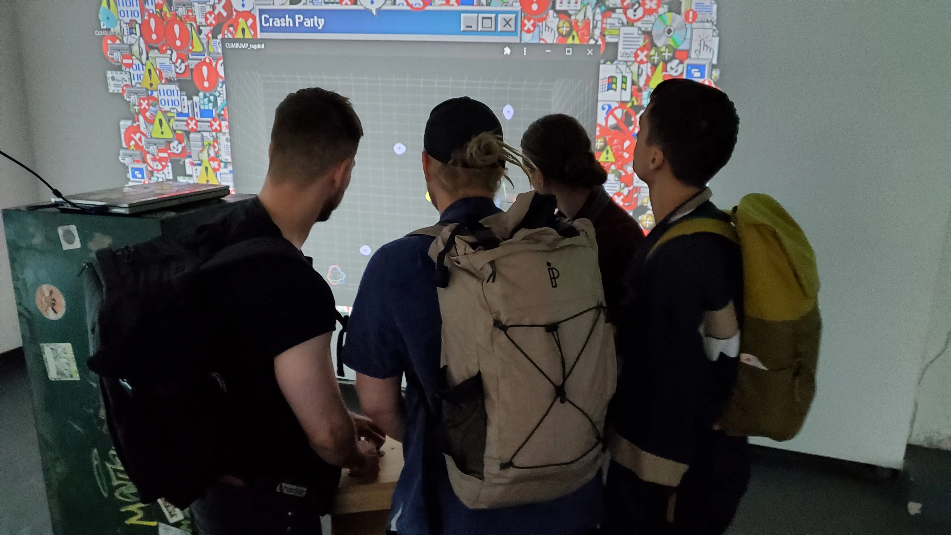 In 2023, the Cookie Collective were invited for live coding performances at A MAZE. festival in Berlin. The place had an extra room for an exhibition, so we had the opportunity to make something special. With Emilie Breslavetz, we created a playful and experimental exhibition: the Crash Party. People could play games with alternative controllers and be immerged in a world of errors and bugs. This is where we created Crashboard, our cybersurfing game played with a skateboard.