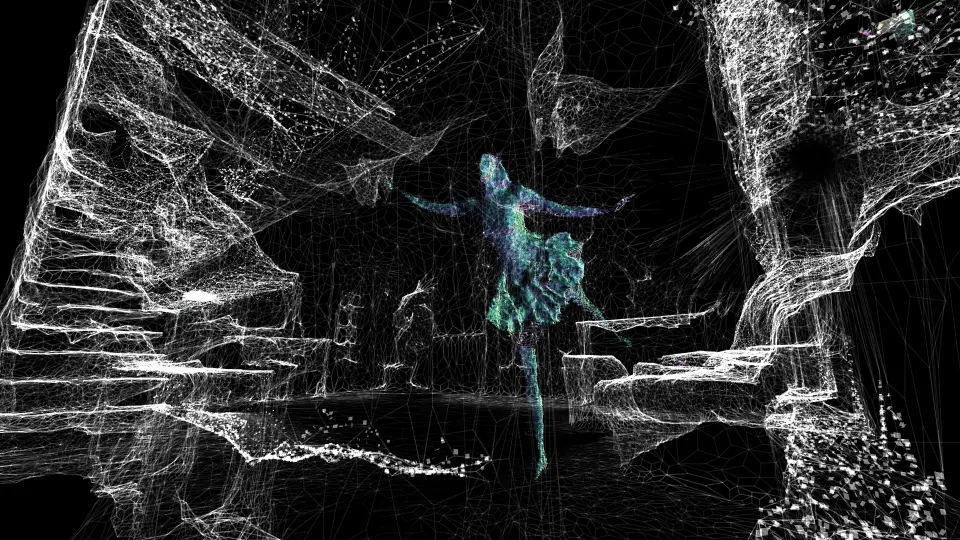 In Dusted, the user explores fragmented memories, thrust into a quest to rebuild identity. This journey is woven into the project through vibrant aesthetics and dynamic interactions enabled by Kinect technology: gestures triggers a swirl of particles, fragments of memory rising and vanishing in a visual explosion.